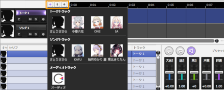 使用 [+] 按钮可以轻松地从列表里选择角色并添加音轨,并用 [↑] [↓] 按钮为其排序。