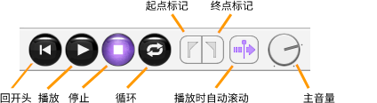 停止播放。当多次按下停止按钮时,光标会先移至起点标记,再移至开头。