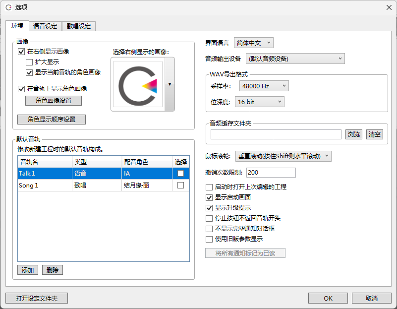 设置文件夹,用于存放冻结音轨或加载外部音频文件时生成的缓存文件。