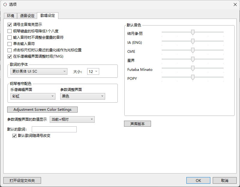「默认的歌词」留空时,取消勾选将把「ドレミ……」固定为 C Major。