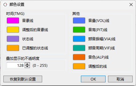 可以自由修改调整界面的时间、音高等线条的颜色。