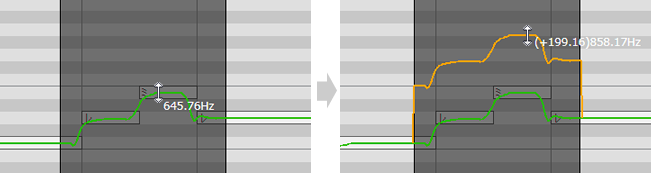 在音高 / 颤音调整界面拖动的同时按住 Shift 键时可以删除原始值。3