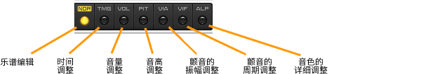在这里调整声音的音高。仅调整基本音高,不包含颤音。