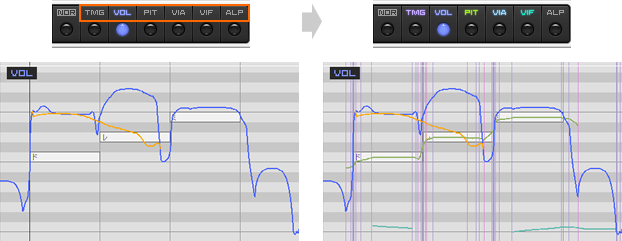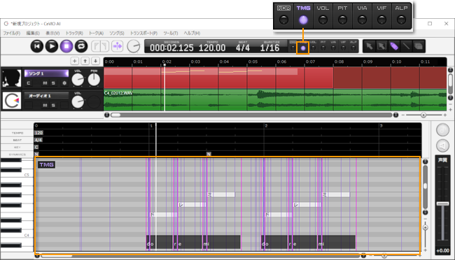 因为『CeVIO AI』会从乐谱整体推定演唱风格,所以当增加、删除音符,改变或编辑音符长度和音阶时,乐谱的各个部分的参数——如时间和音高——都会发生变化。