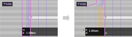 由于时间调整值是相对于原始值而言的,因此当参数发生变化时,调整值也会发生变化。在这种情况下,每条时间线内跨越了相邻线的线将会被重置。