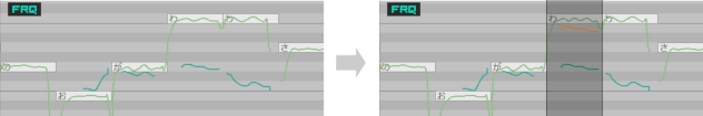 拖动黑带上方的线,可以以音素为单位调整辅音或元音的长度。