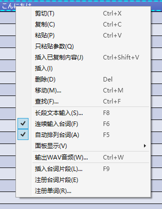 在台词列表上右键单击来打开右键菜单。