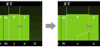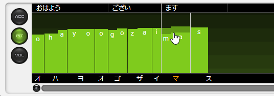 * 当鼠标悬停在要调整的单词、音素或音拍(假名)上时,它会变为橙色。
