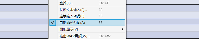 从「音轨」的菜单里或在音轨上右键选择「设置音轨的内容为等间隔排列」后,该音轨内的全部台词将自动按一定的距离等间隔排列。(第一句台词的位置不会发生变化。)
