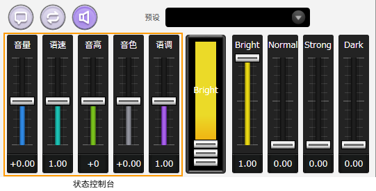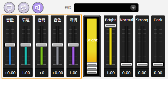 可以通过拖动(鼠标左键按住并移动)推子的方式来调整声音的音量、语速等。