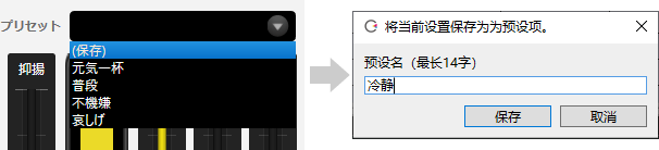选择(保存),可以将当前的参数设定命名并添加到预设中。