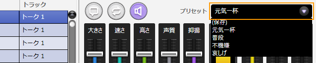 轻轻一点就可以使用诸如「元気一杯」「哀しげ」等预设好的感情1,并更进一步地调整音量和语速等细节。