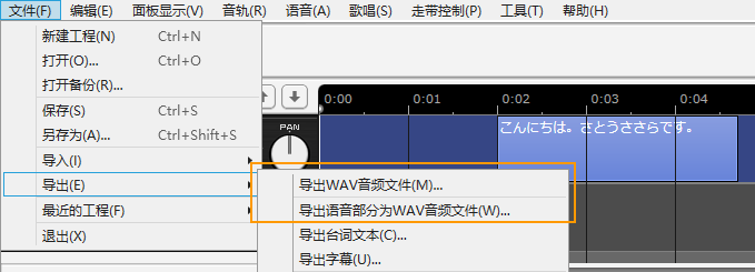 另外,也可以通过「导出语音部分为WAV文件」,将每句台词以单声道 WAV 的格式分别导出(可以在选项中指定采样率和位深度。)。